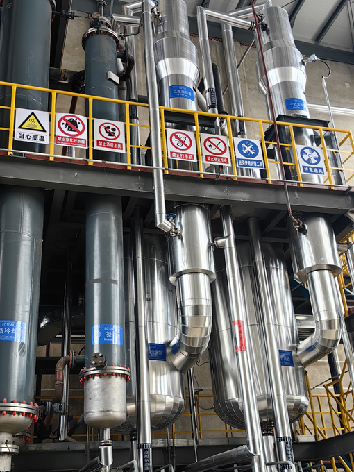 三效蒸發(fā)器主要由相互串聯的三組蒸發(fā)器、冷凝器、鹽分離器和輔助設備等組成。三組蒸發(fā)器以串聯的形式運行,...